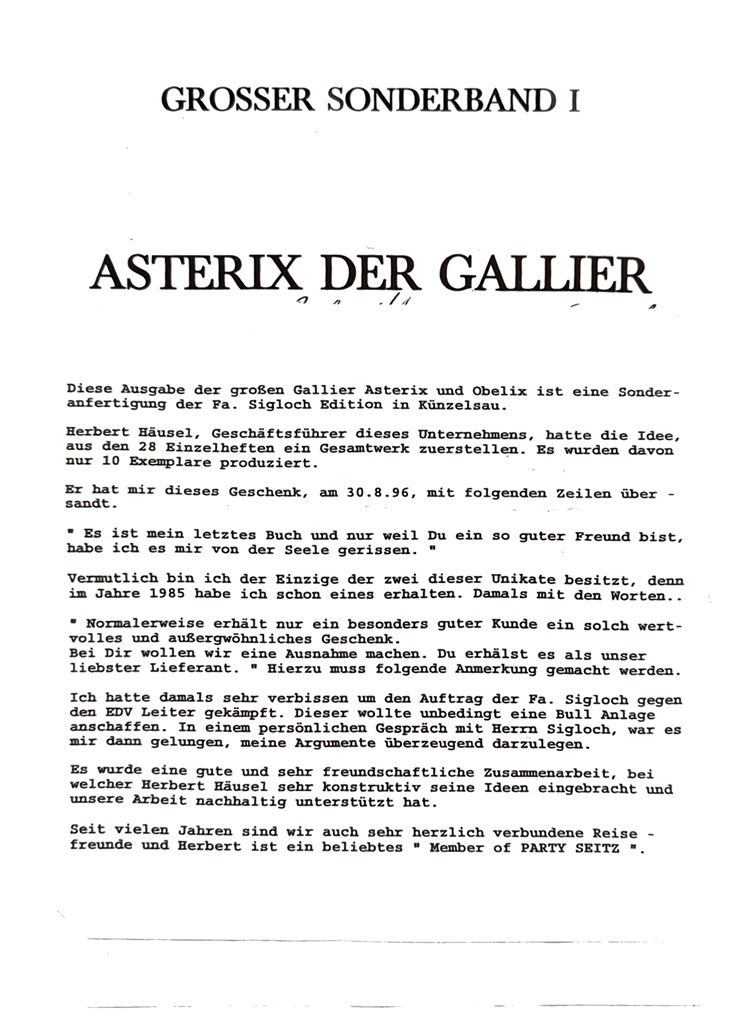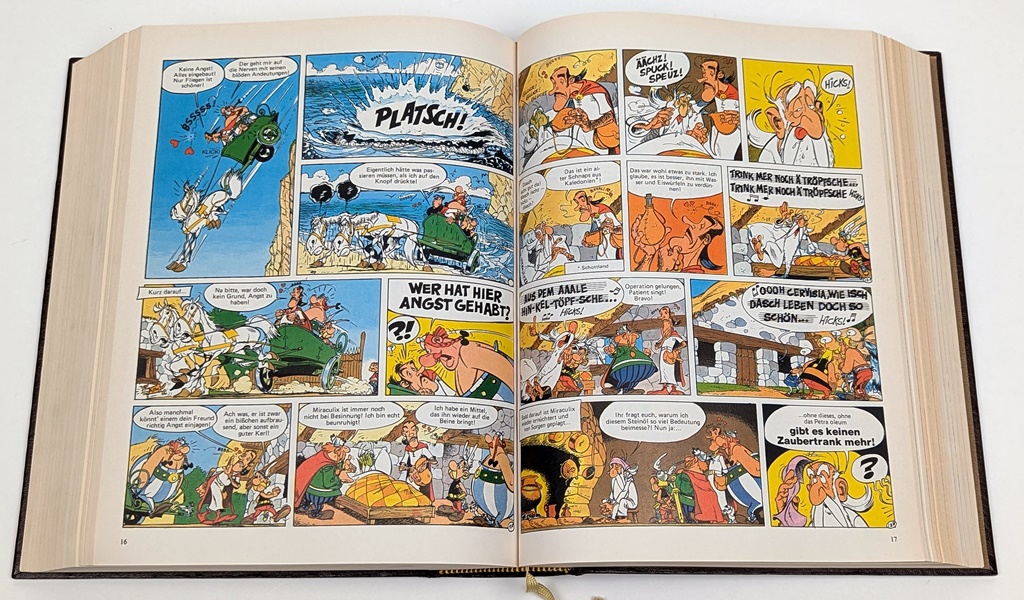 Beim Horizont Verlag erschienen die bekannten Asterix-Lederbände. In den regulären Lederbänden waren stets 4 Asterixbände abgedruckt. In dieser Spezialausgabe ist Band 1 bis Band 28 enthalten.